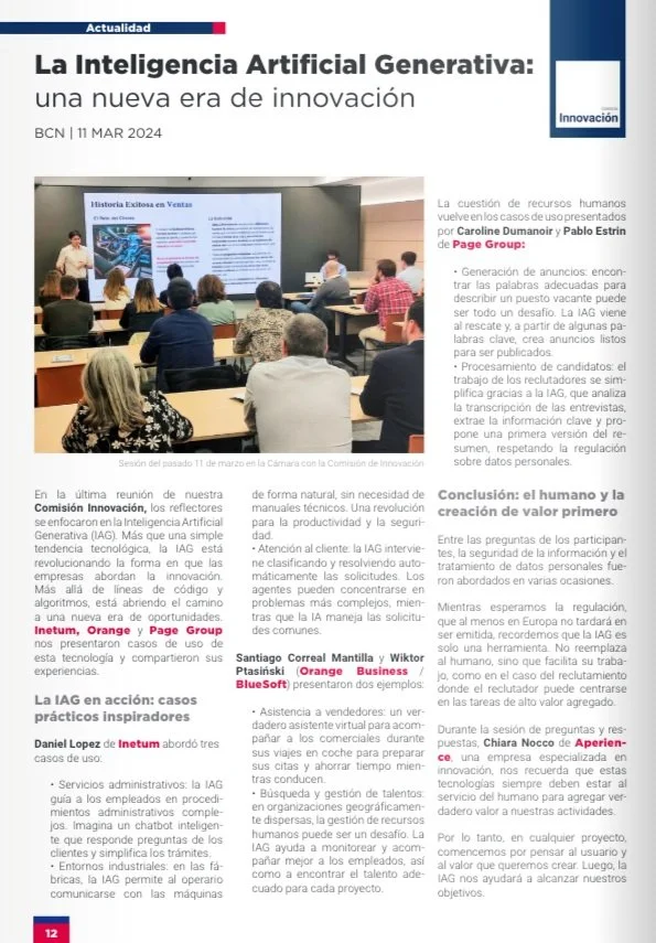 Lors de la dernière réunion de la Commission de l'Innovation, l'accent a été mis sur l'Intelligence Artificielle Générative (IAG). Bien plus qu'une simple tendance technologique, l'IAG révolutionne la manière dont les entreprises abordent l'innovation. Au-delà des lignes de code et des algorithmes, elle ouvre la voie à une nouvelle ère d'opportunités.
